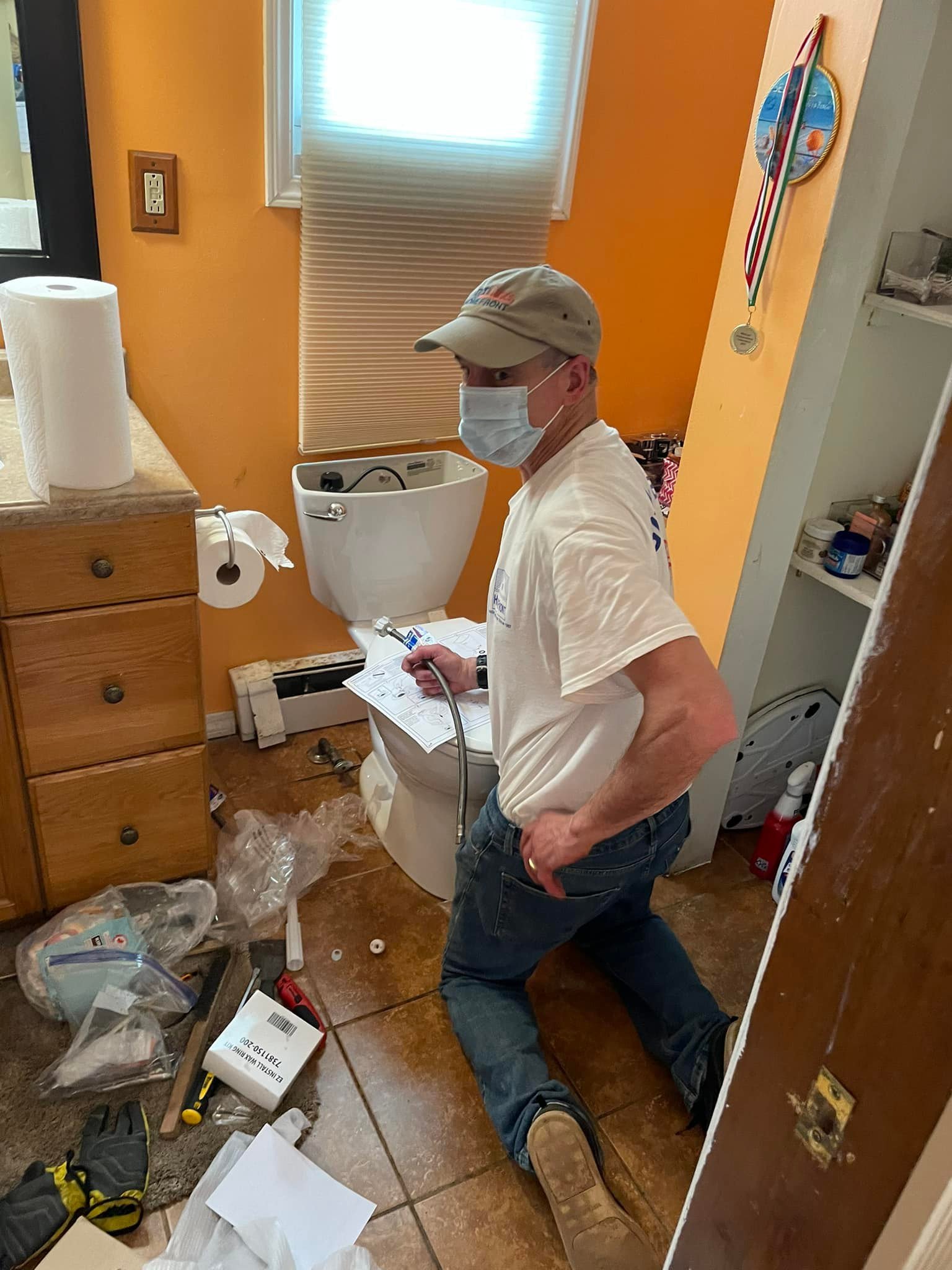 The longevity of even the best of initiatives is no guarantee without the right person stepping up at the right time. Apparently, at Enfield HomeFront, they do some of their best scouting around dumpsters. Robert (Bob) Atiyeh tells us that his first HomeFront assignment was to make sure their project dumpsters were packed efficiently. He was so inspired by the example of Ralph Cerrato and fellow founding father, Bob Boozang, that he stepped up as Assistant House Captain on their projects in 2010. Much to the good fortune of many Enfield families in need, Bob then accepted the role of what we in the office call Enfield HomeFront’s “Uber House Captain.” He functions as a virtual “Air Traffic Controller,” the main point person with HomeFront for as many as two, three and four Enfield projects each year. It should be noted that the Enfield HomeFront projects are as impressive in quality as in quantity. As just a few examples, Bob has helped to oversee the installation of wheelchair ramps, countless window replacements, roofing repairs, structural improvements and deck overhauls. Somehow, Bob masterfully juggles year-round Enfield HomeFront activity with his most important role as husband and father in addition to his day job as a corporate AdminServer and technology developer. HomeFront’s Associate Executive Director, Lou Valenti, had this to say about Bob, Ralph and their fellow leaders, “The Enfield HomeFront leaders are so well prepared. This truly is a mission for them and they take it very seriously. They always start every project they finish, their commitment is extraordinary and they make the process as easy as possible for HomeFront staff. More importantly, they are remarkably good human beings who lead by example.” Here are some images of HomeFront’s Volunteer Keystone Award winner, Bob Atiyeh, doing what he has done best with us over the years.
